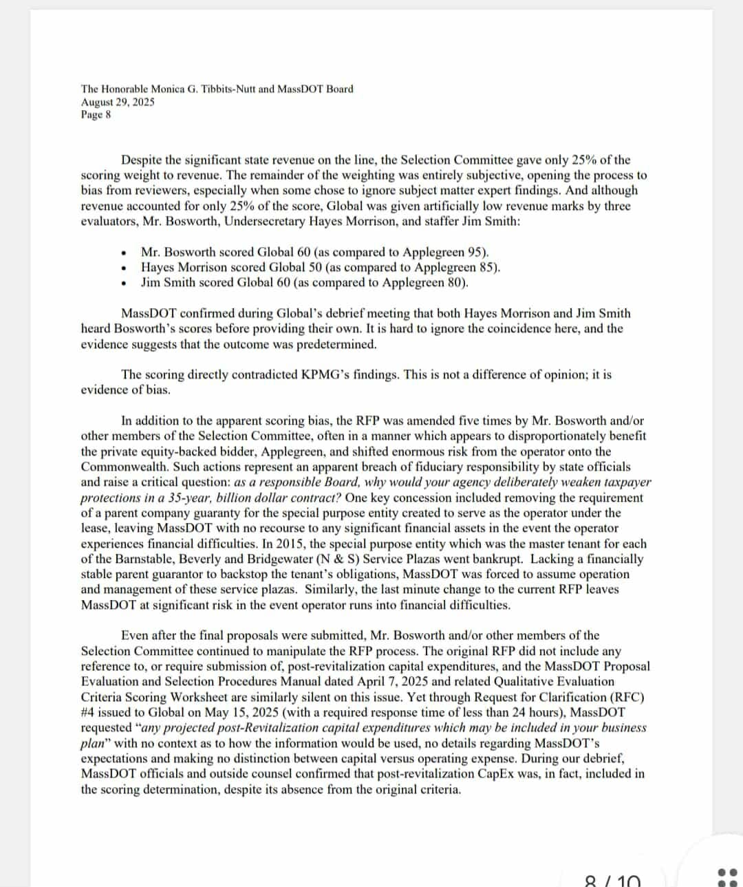 Additionally, the letter charged there were ignored revenue findings, including Global's guarantee to the state of $1.512 billion in minimum annual rent over the life of the lease, which they say was unmatched by any bid in the process. You can read the whole letter below: